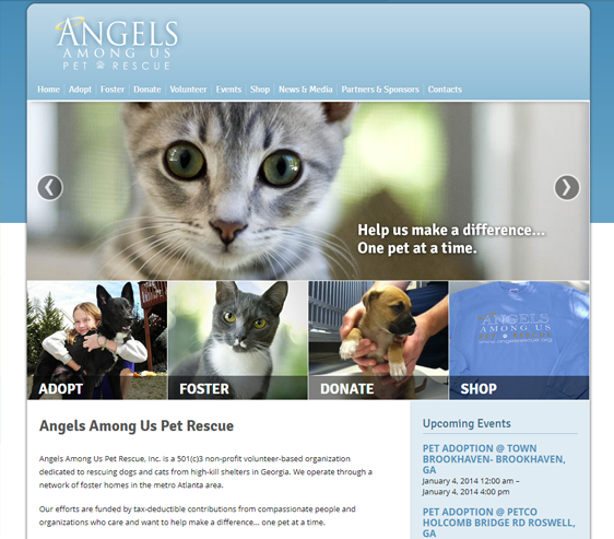 By November 2011, just two years later, Angels Among Us Pet Rescue was the largest and fastest growing volunteer-based pet rescue organization in the southeast United States, saving 120 animals per month through a network of over 160 foster families in the metro Atlanta area. Their successful growth continues to be driven by an impressive online and social media presence enabled by the creative and technical design capabilities provided by Look See Studios.